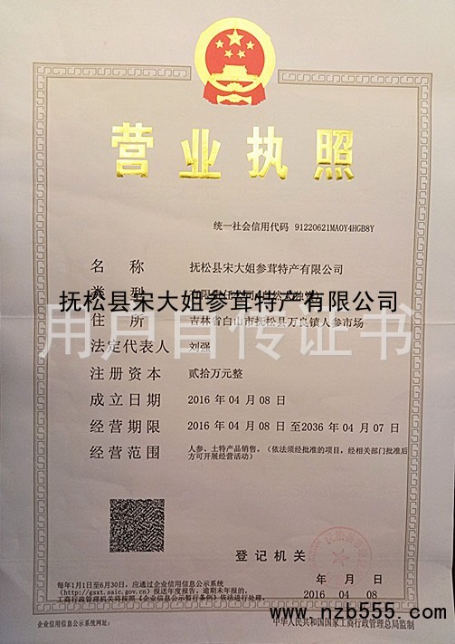 食品經營;人參、土特產品、靈芝制品、蜂產品、鹿產品、菌類、茶葉類、預包裝食品...