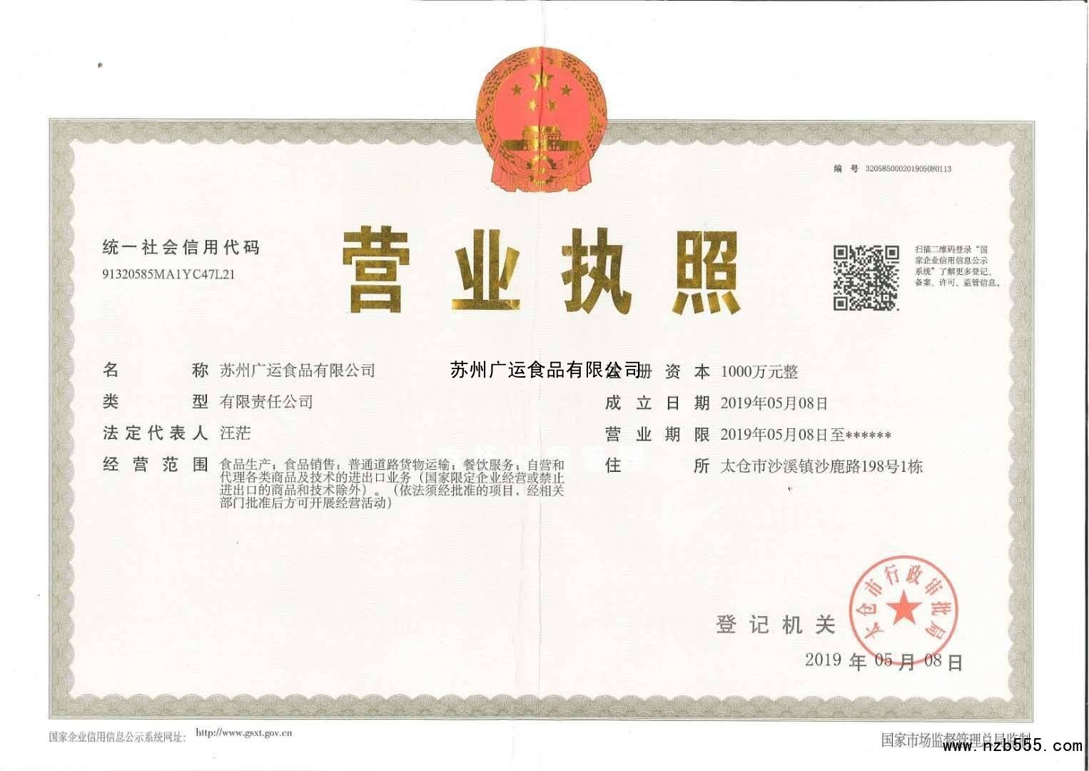 | 發(fā)證機(jī)構(gòu): | 太倉(cāng)市行政審批局 | 發(fā)證時(shí)間 : | 2019-05-08 |