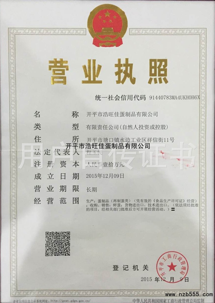 榮譽(yù)資質(zhì) 開(kāi)平市浩旺佳蛋制品有限公司