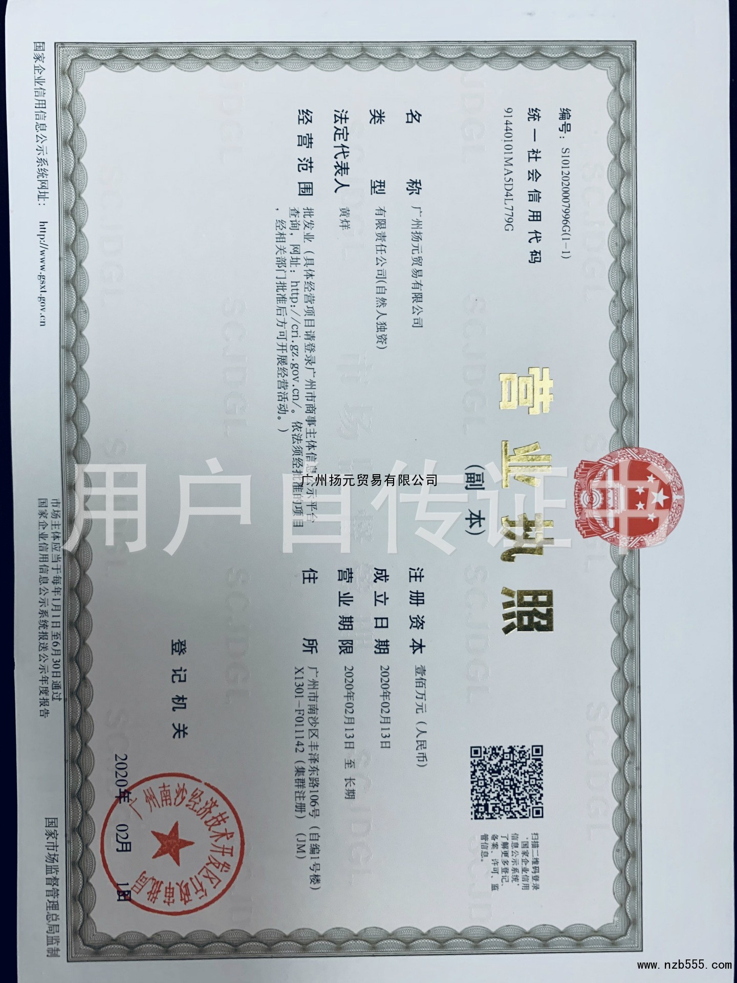 | 發(fā)證機(jī)構(gòu): | 廣州南沙經(jīng)濟(jì)技術(shù)開(kāi)發(fā)區(qū)行政管理局 | 發(fā)證時(shí)間 : | 2020-02-01 |