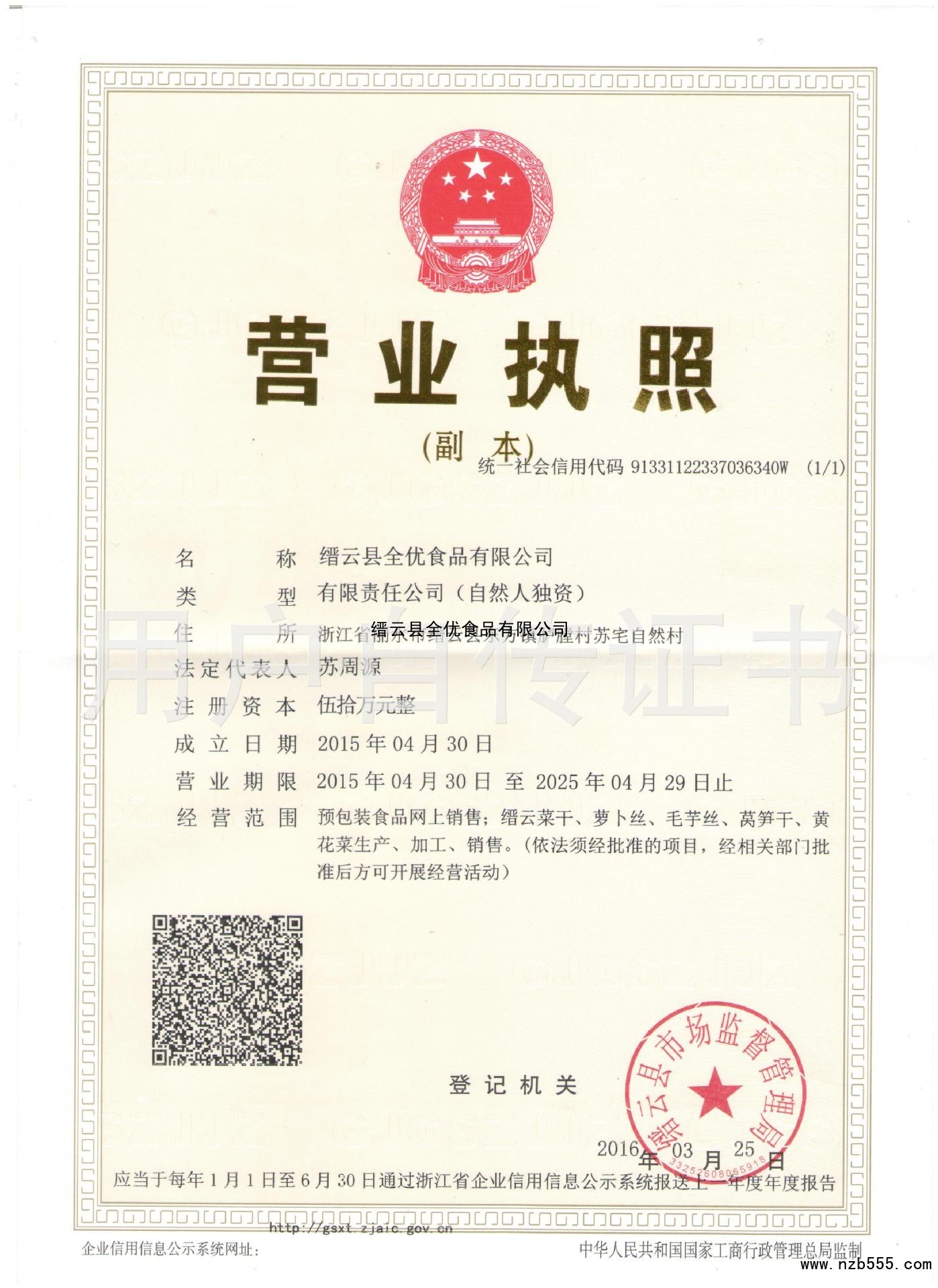縉云縣全優(yōu)食品有限公司