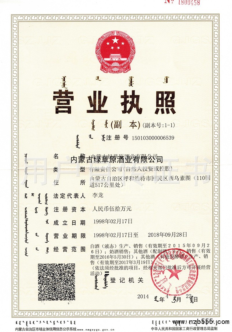 內蒙古綠草原酒業有限公司