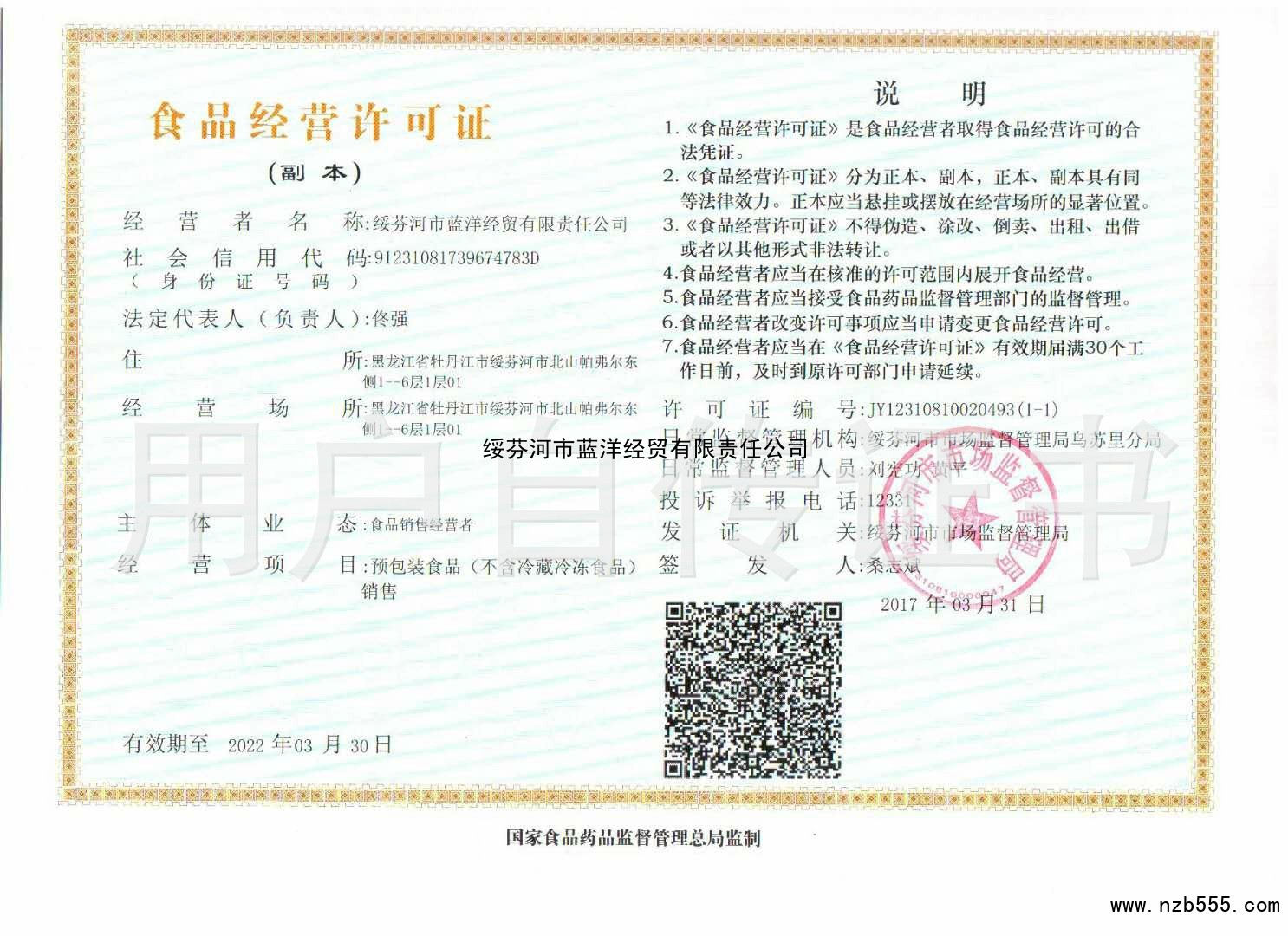 食品流通許可證(除乳制品、嬰幼兒配方乳粉、酒之外的流通許可證)