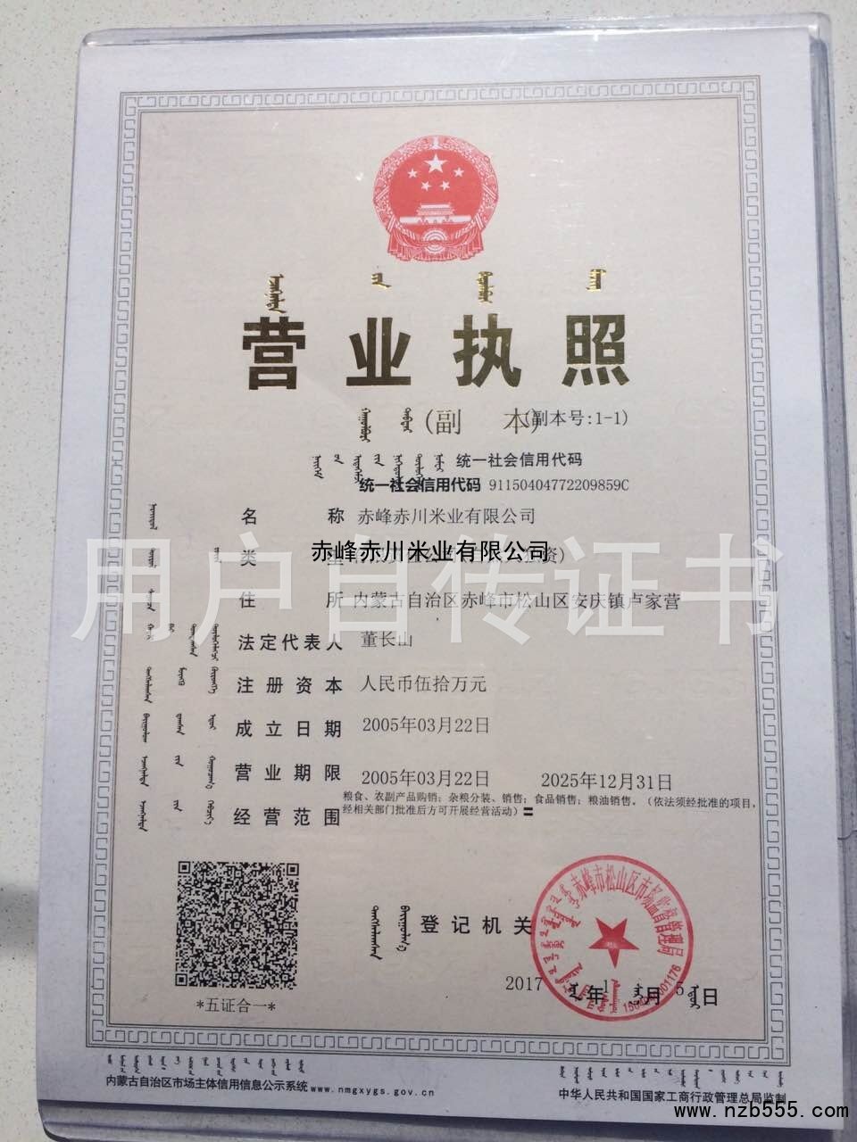 | 發(fā)證機(jī)構(gòu): | 赤峰市松山區(qū)市場監(jiān)督管理局 | 發(fā)證時間 : | 2017-01-05 |