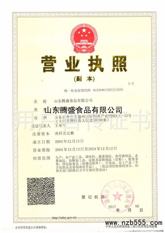 首頁 > 榮譽(yù)資質(zhì) > 山東騰盛食品有限公司