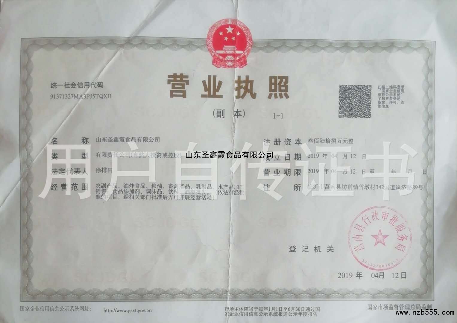 | 發(fā)證機(jī)構(gòu): | 莒南縣行政審批服務(wù)局 | 發(fā)證時(shí)間 : | 2019-04-12 |