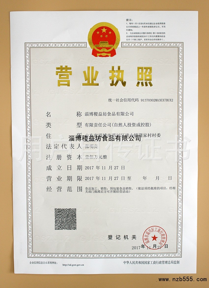| 發(fā)證機(jī)構(gòu): | 淄博市淄川區(qū)工商行政管理局 | 發(fā)證時間 : | 2017-11-27 |
