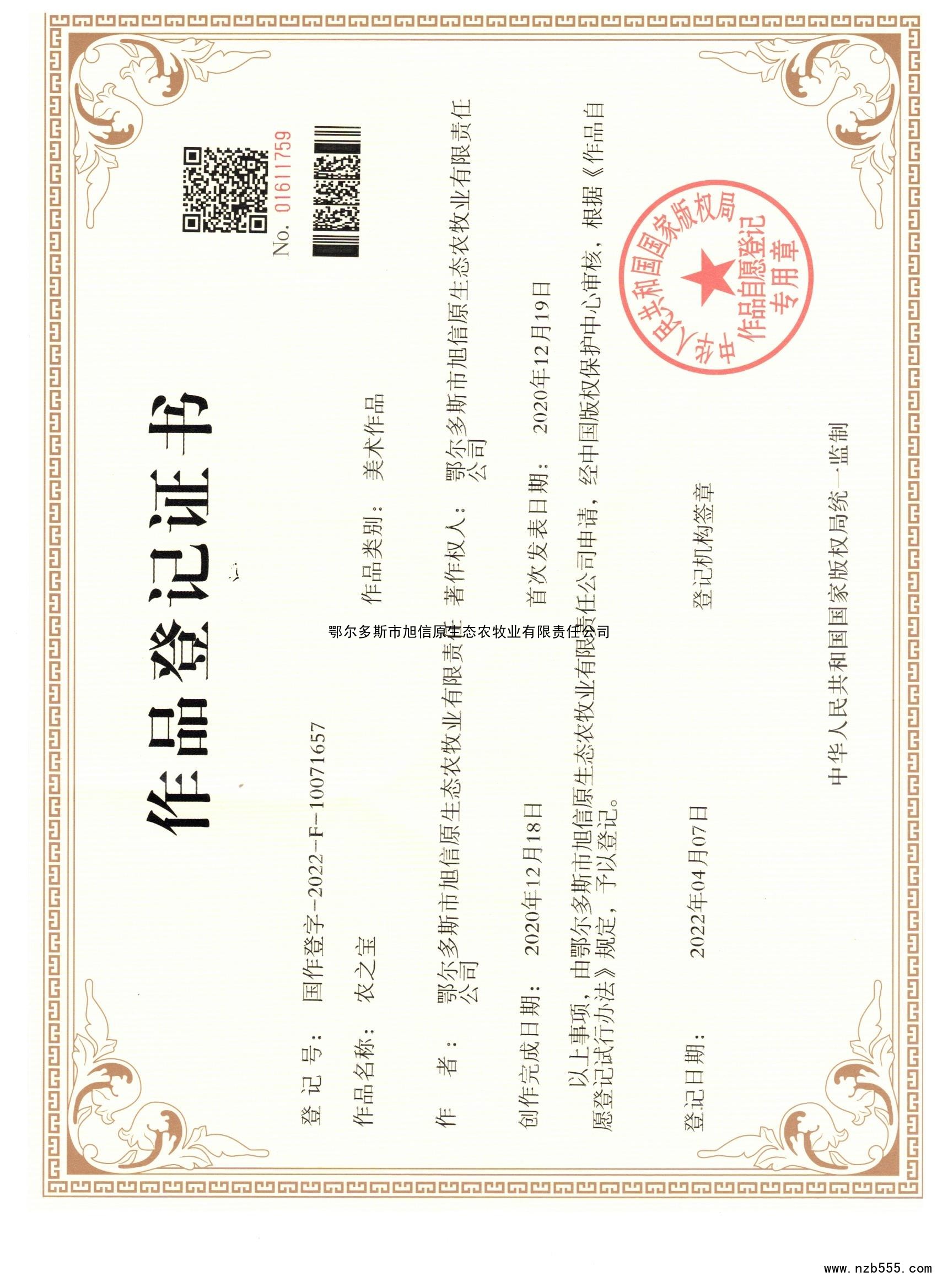 榮譽(yù)資質(zhì) 作品登記證書 農(nóng)之寶