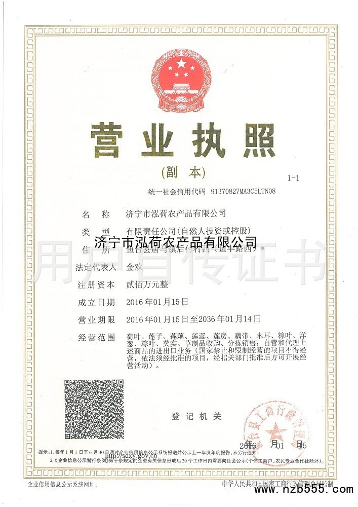 榮譽(yù)資質(zhì) 濟(jì)寧市泓荷農(nóng)產(chǎn)品有限公司