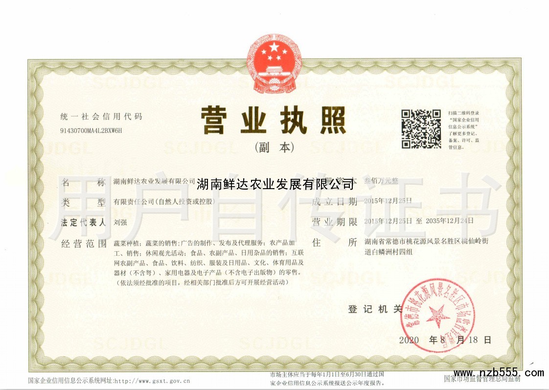 | 發(fā)證機(jī)構(gòu): | 常德市市場(chǎng)監(jiān)督管理局 | 發(fā)證時(shí)間 : | 2020-08-18 |