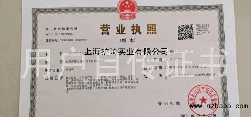 | 發(fā)證機(jī)構(gòu): | 上海市金山區(qū)市場監(jiān)督管理局 | 發(fā)證時(shí)間 : | 2019-08-20 |