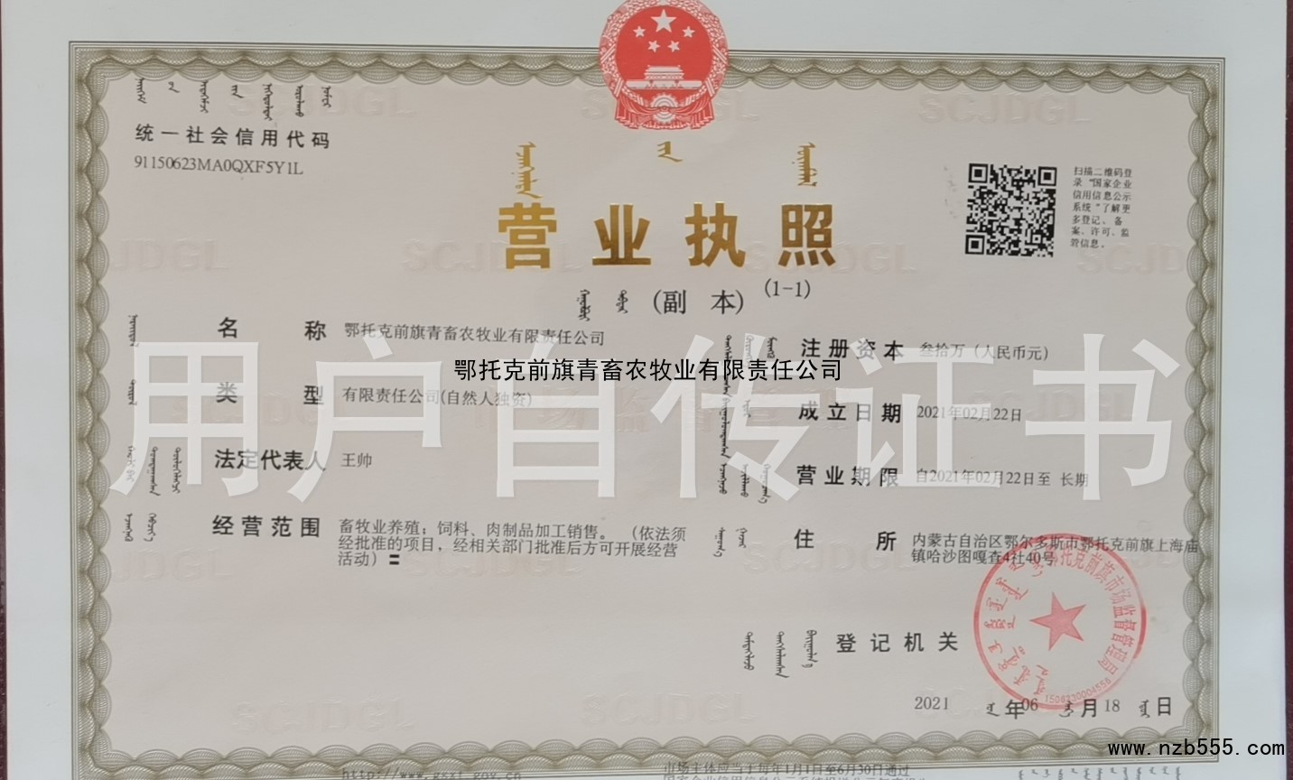 鄂托克前旗青畜農牧業有限責任公司