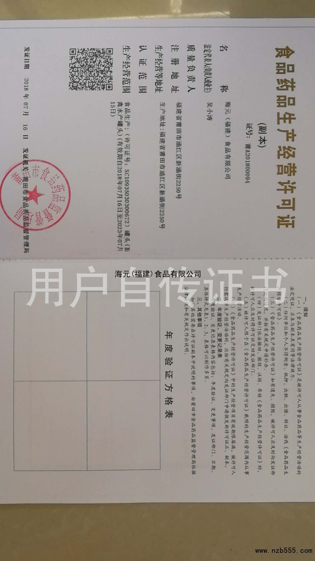 榮譽(yù)資質(zhì) 海元(福建)食品有限公司