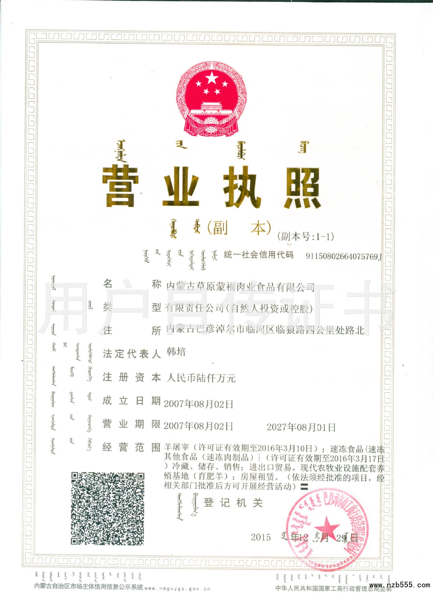 許可經營項目:羊屠宰(憑畜禽定點屠宰許可證經營);速凍食品{速凍其他食品(速凍...