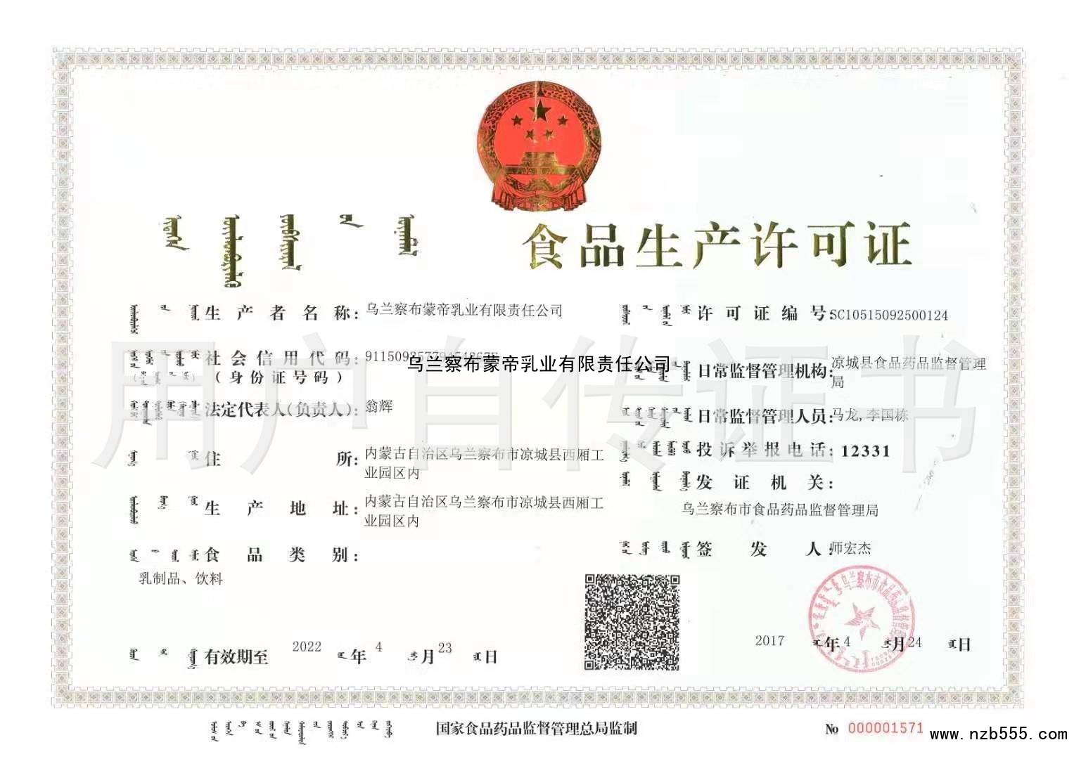 烏蘭察布蒙帝乳業(yè)有限責(zé)任公司