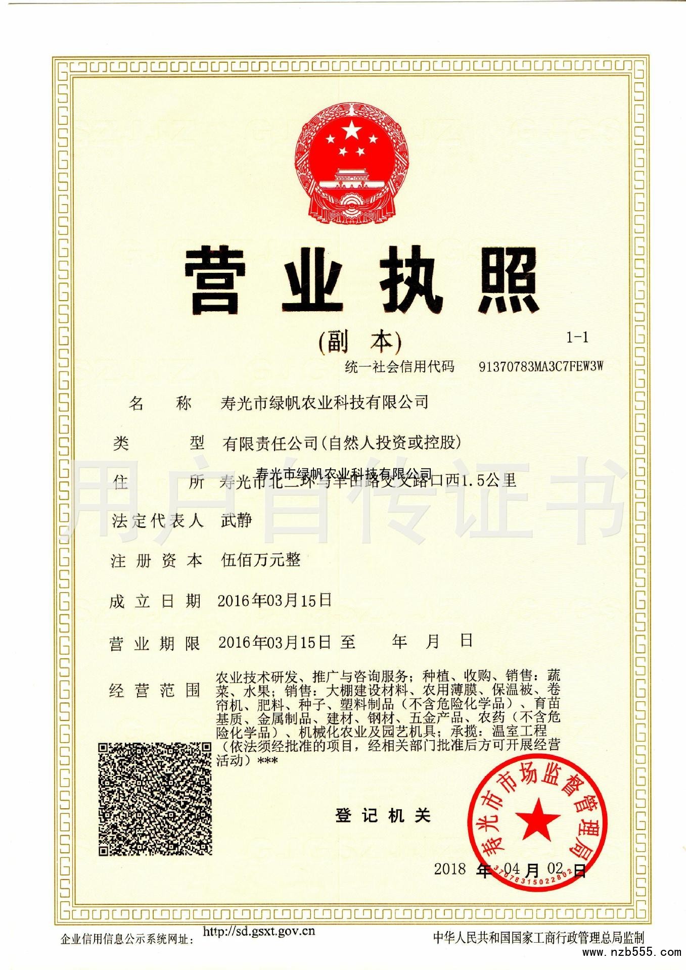 | 發(fā)證機(jī)構(gòu): | 壽光市市場監(jiān)督管理局 | 發(fā)證時間 : | 2018-04-02 |