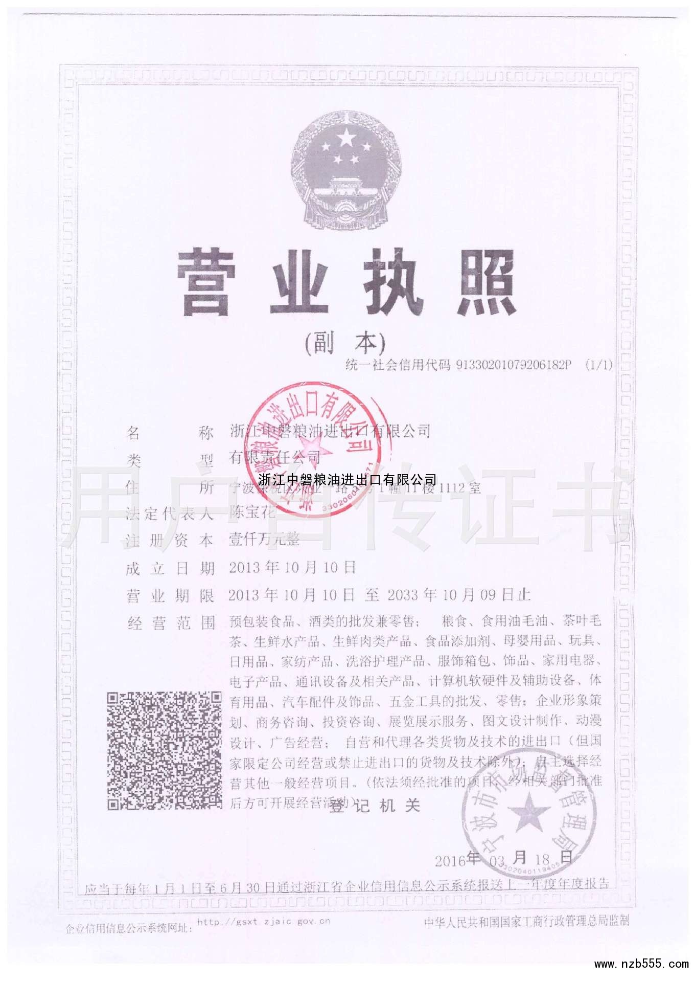 預包裝食品、酒類的批發兼零售; 糧食、食用油毛油、茶葉毛茶、生鮮水產品、生鮮肉...