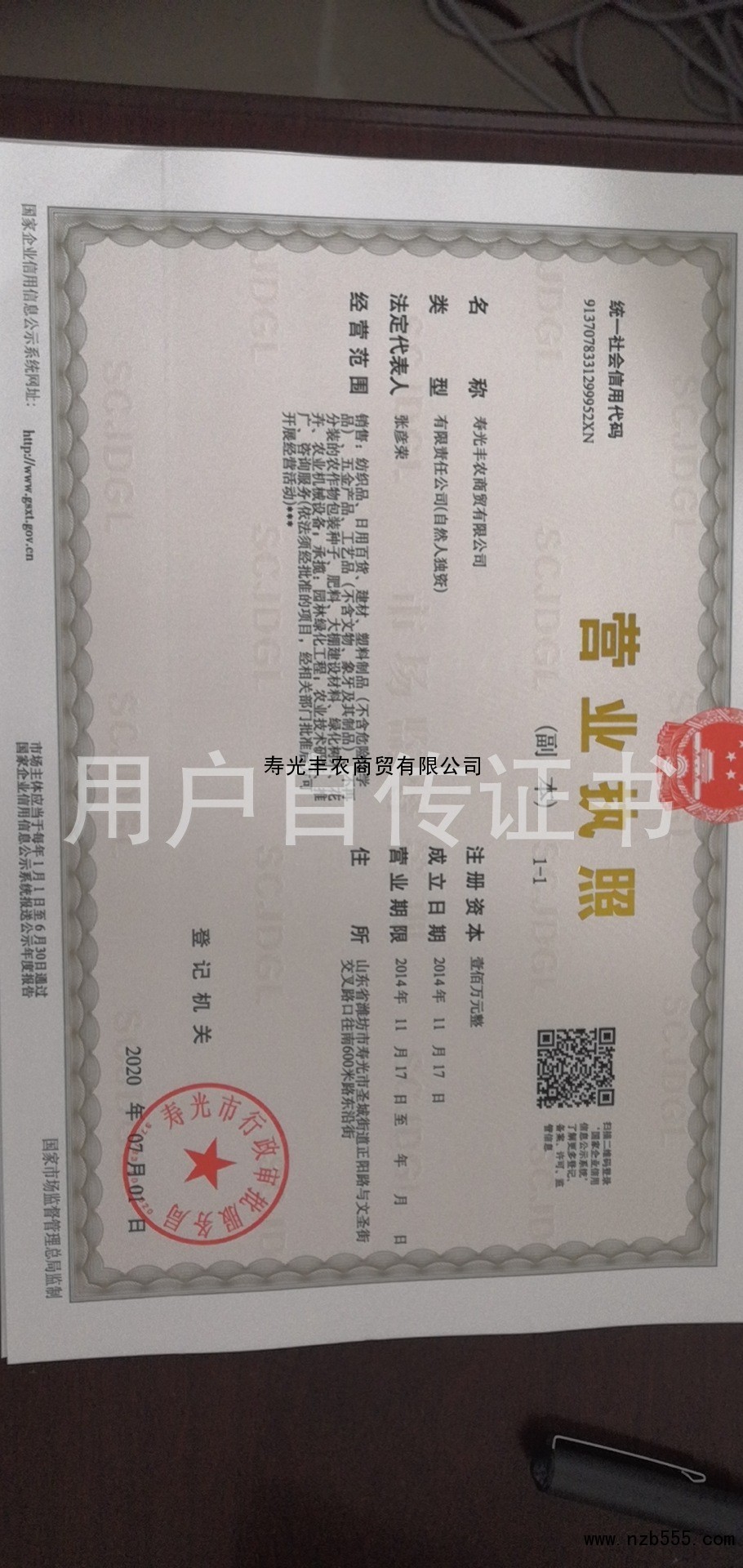 | 發(fā)證機(jī)構(gòu): | 壽光市行政審批局 | 發(fā)證時(shí)間 : | 2020-07-01 |
