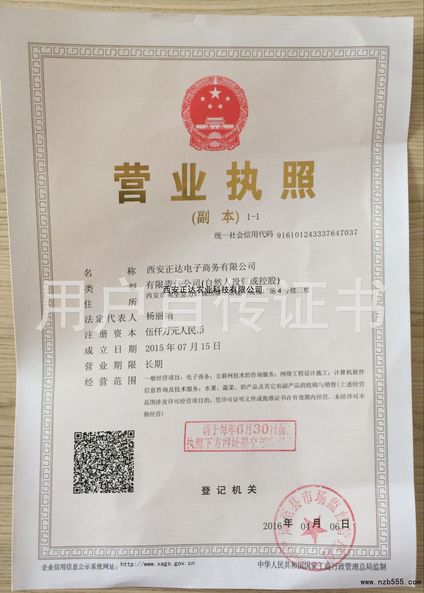 | 發(fā)證機(jī)構(gòu): | 周至縣市場監(jiān)督管理局 | 發(fā)證時(shí)間 : | 2016-04-06 |