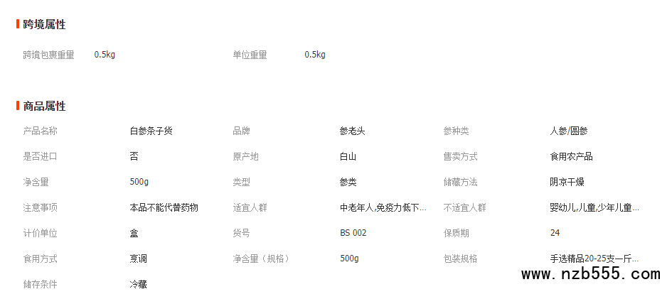 長白山整支人參白參生曬參500克代打粉東北白參園參鮮參生參