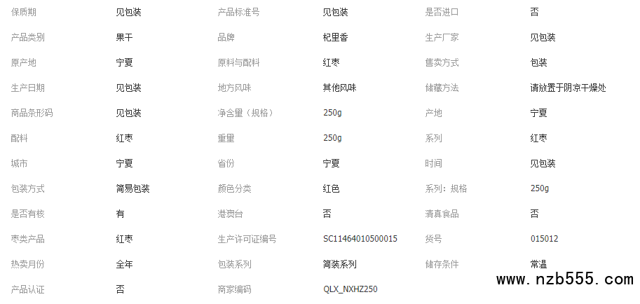 杞里香寧夏黃河攤棗 250g袋裝即食寧夏紅棗 皮薄核小寧夏特產紅棗