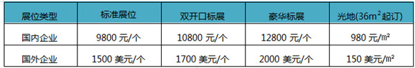 注:A. 標(biāo)準(zhǔn)展位配備:展位地毯鋪設(shè)、中英文雙語楣板字、咨詢桌一張、折椅兩把、射燈或日光燈兩個、220V插座一個。