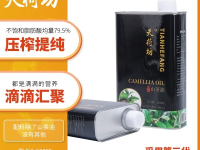 山茶油高溫炒菜油一級(jí)頭道壓榨食用油茶子油鐵罐500ml裝天荷坊牌