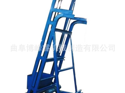 該機(jī)由帶走輪的料車(chē)、傳動(dòng)裝置、導(dǎo)軌及滑輪等組成,當(dāng)料車(chē)在底部原始位置時(shí),由工人或其他方式給料車(chē)加滿物料,料車(chē)充滿后,按動(dòng)啟動(dòng)按鈕,傳動(dòng)裝置的鏈條牽引料車(chē)緩緩上升,料車(chē)沿著導(dǎo)軌上升到運(yùn)料層后,料車(chē)斗體清翻而卸出物料