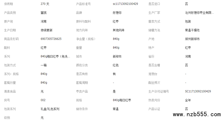 好想你每日紅棗840g新