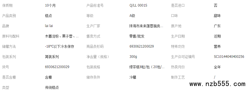 【名 稱】來(lái)來(lái)綠茶糕點(diǎn)300g