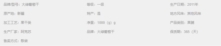 馬奶綠葡萄干呈長橢圓形,呈棕色、黑色或黃綠色。粒大有核,香甜可口,口味醇香。可帶核一同食用,具有益氣補腎作用。葡萄干的營養價值:1.葡萄干中的鐵和鈣含量十分豐富,是兒童、婦女及體弱貧血者的滋補佳品;2.葡萄干內含大量葡萄糖;3.葡萄干還含有多種礦物質和維生素、氨基酸。葡萄干的天然程度:新疆獨特的氣候和土壤孕育的葡萄干的優良品質,葡萄干都是天然晾干的,成長已有2000年的歷史,在種植和栽培過程中無農藥和化學成分,獨特的地理環境造就了無病蟲害、無農藥污染、天然健康、營養豐富的葡萄及葡萄干產品。
