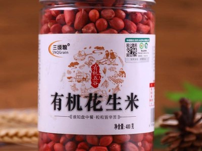 三頃糧 有機花生米紅皮花生米 400克桶裝 五谷雜糧 粗糧 廠家批發