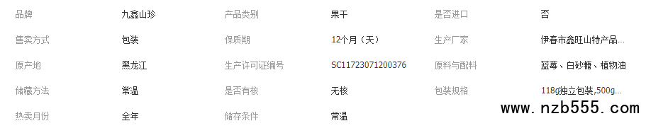 九鑫山珍有機藍莓干大顆粒獨立包裝