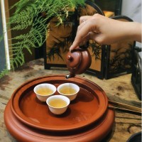 茶館藏在民國老建筑的底樓,青磚墻爬滿三角梅,玻璃花窗將陽光剪成細碎的光斑。室內沒有時下流行的網紅裝飾,只在原木茶桌上擺著粗陶茶寵,墻角竹籃里堆著新采的茉莉花,空氣中浮動著若有若無的炭火氣。