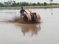 國外的農(nóng)機(jī)比賽駕駛手扶拖拉機(jī),硬是被小伙玩出F1賽車的感覺