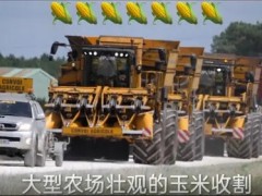 農(nóng)業(yè)機械化大型拖拉機玉米收割機,聯(lián)合作業(yè)很壯觀看著好過癮